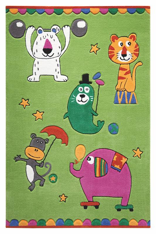Dětský koberec s motivem veselých zvířecích artistů z cirkusu. Lachtan, lev, slon, opice. Špičkové zpracování a materiál. Nechte Vaše děti hrát na tomto koberci a nechat rozvíjet jejich fantazii.